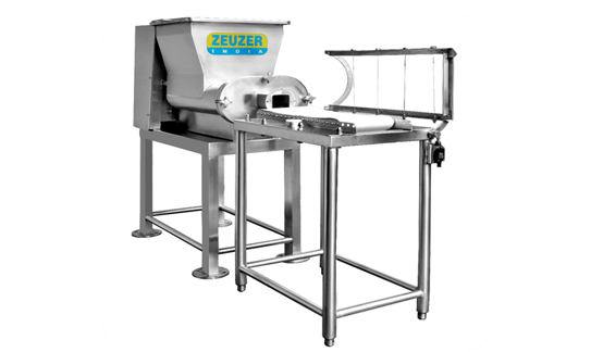 Butter Extruder: ZEUZER INDIA est fier de présenter l'extrudeuse de beurre pour une fabrication à petite échelle de 50 kg/ h qui a été développé pour diverses applications de produits épais, tels que les produits de pâtisserie comme le beurre, la margarine, etc., où il est nécessaire de les conditionner / de les ramollir avant de les introduire dans l'unité de remplissage. Il s’agit d’une unité portable composée de doubles vis hélicoïdales pour l’alimentation avec un système d’alimentation variable pour le traitement du produit. Le beurre sort par une moule pour former une extrusion de section rectangulaire ou ronde. Il est équipé d’un motoréducteur qui entraîne la vis hélicoïdale et d’un couteau qui permet d’arrêter l’entraînement par engrenage, afin de couper le beurre en blocs pesant jusqu’à 500 grammes pour l’emballage.